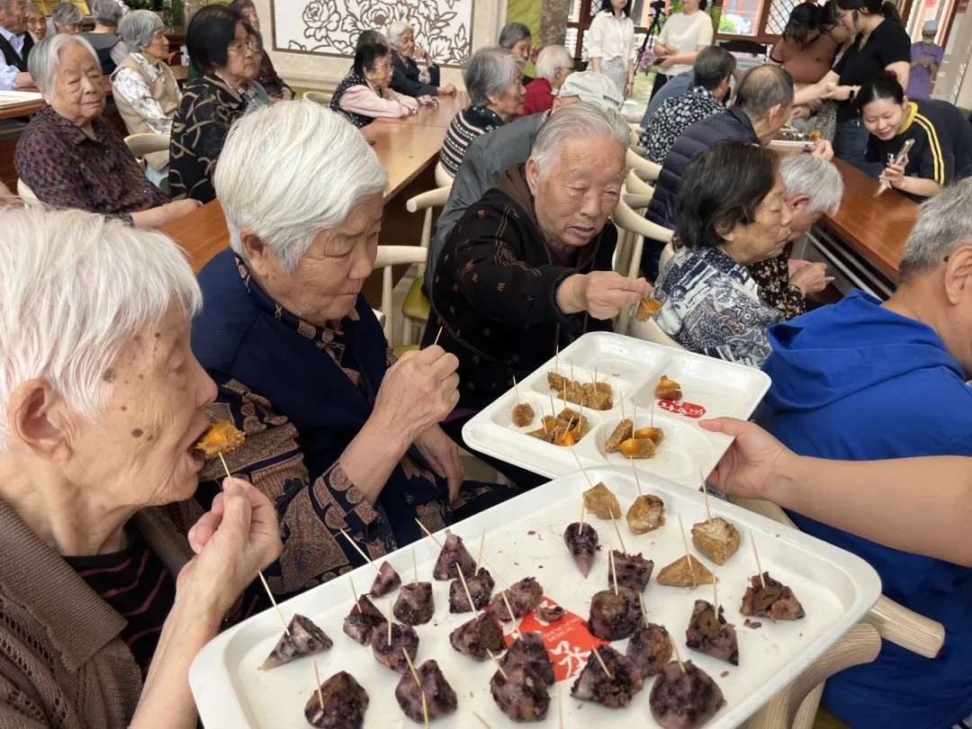 端午佳節(jié),怎么能少的了象征團(tuán)圓與吉祥的粽子?工作人員們準(zhǔn)備了甜咸粽供爺爺奶奶們品嘗,蒸煮后的粽子香氣撲鼻,咬上一口,軟糯香甜,老人們品嘗著自己親手包的粽子,臉上洋溢著幸福的笑容。這不僅是一份美味,更是一份傳承千年的端午記憶。