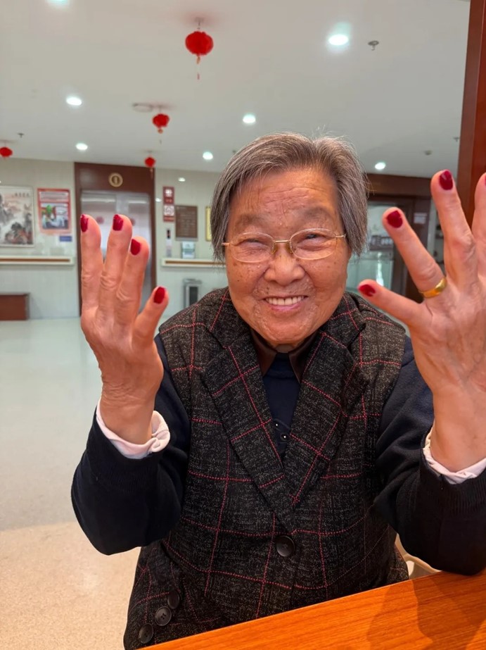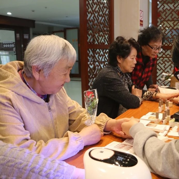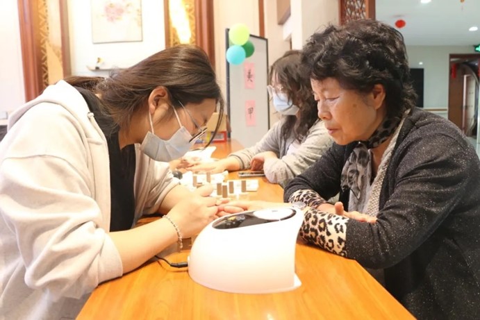 愛美不分年齡,工作人員為奶奶們提供了“美甲體驗”服務(wù)。奶奶們挑選著自己喜歡的顏色,一邊聊天一邊享受指尖的裝扮,仿佛回到了年輕的時光。